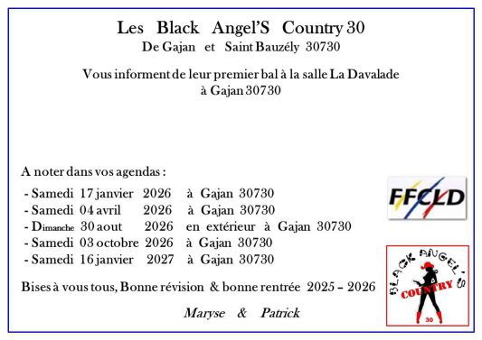 Evénements    Black  Angel'S   Country  30    ==>            saison  2025  -  2026